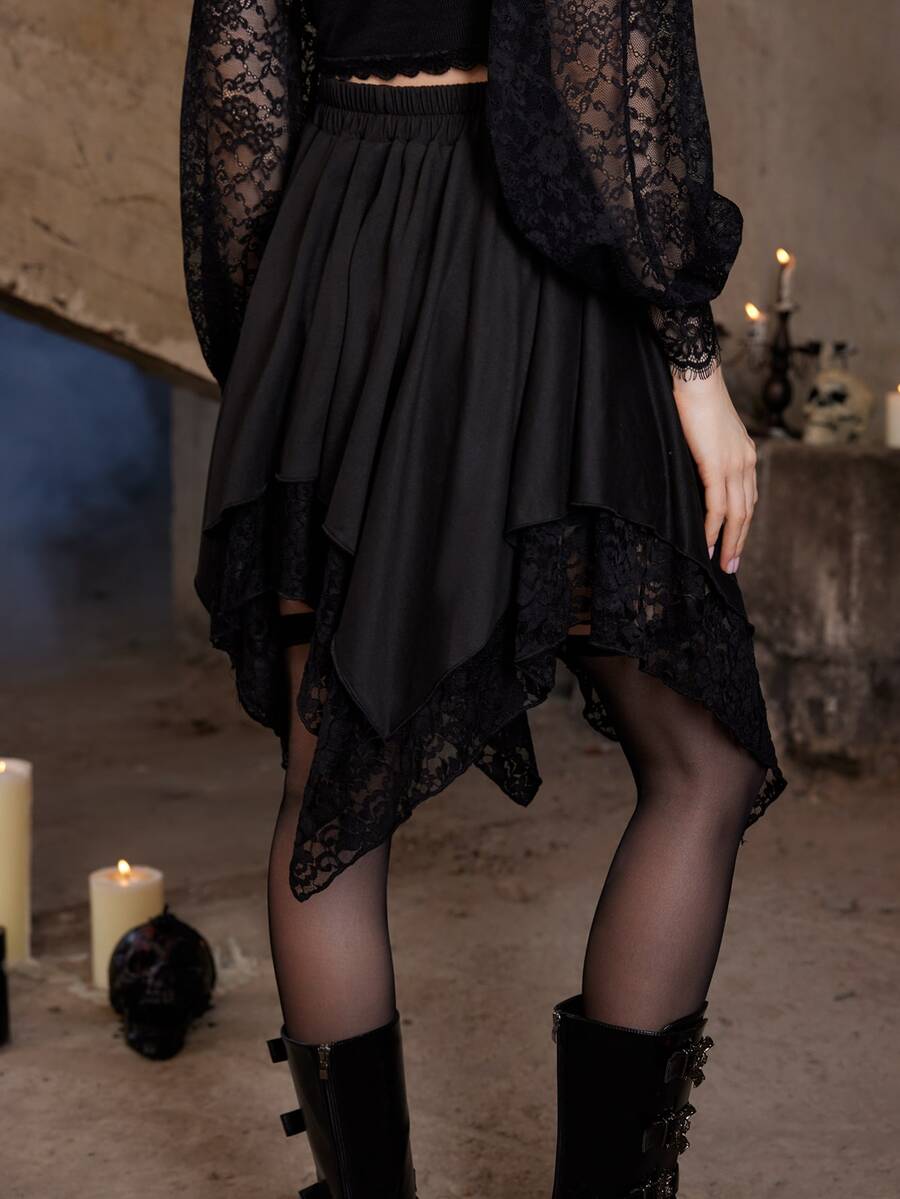 Goth تنورة دانتيل متباين اللون حافة منديل