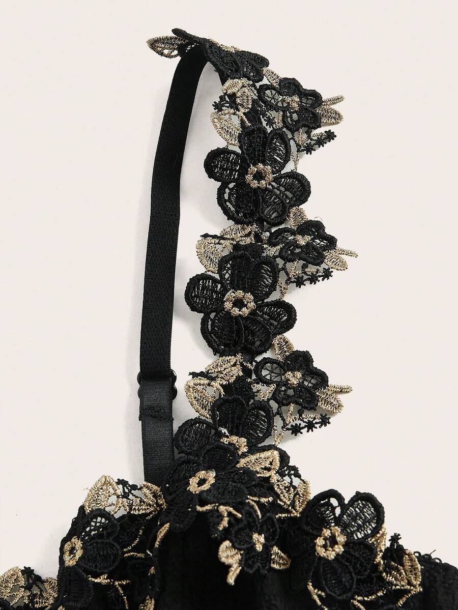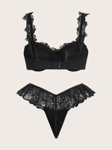 Goth طقم ملابس داخلية دانتيل متباين اللون حلقة معدني