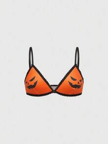 Goth حمالة صدر لاسلكية مطبوعة بتصميم قرع الهالوين الداكن للنساء