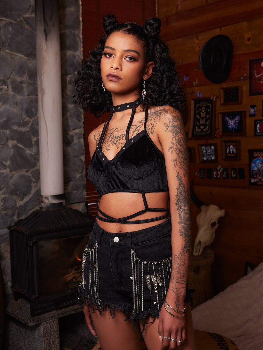 Goth حمالة صدر مزخرف حلقي أشرطة متقاطعة