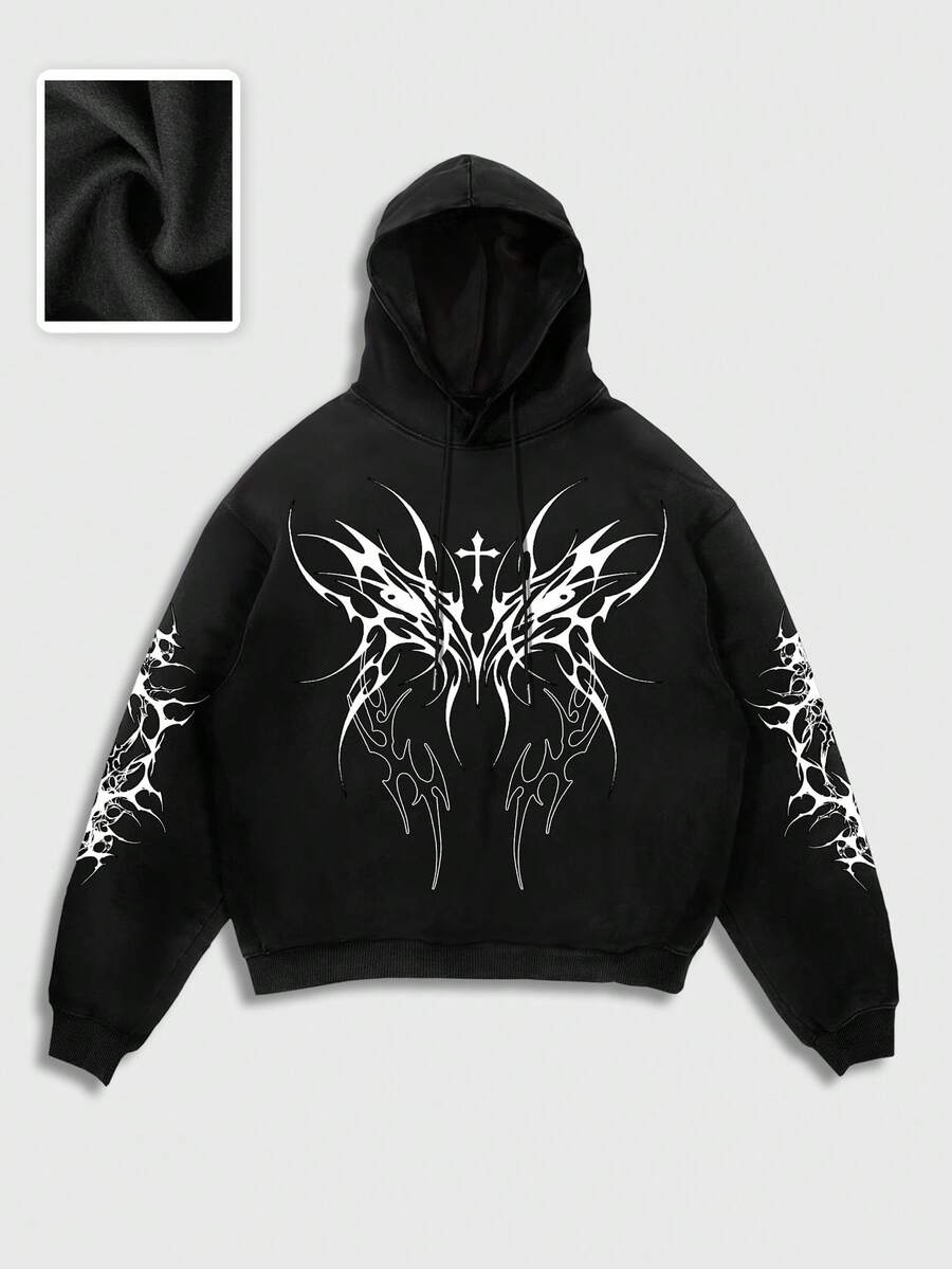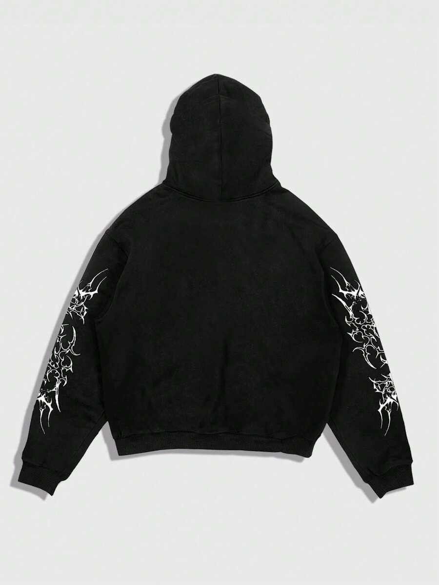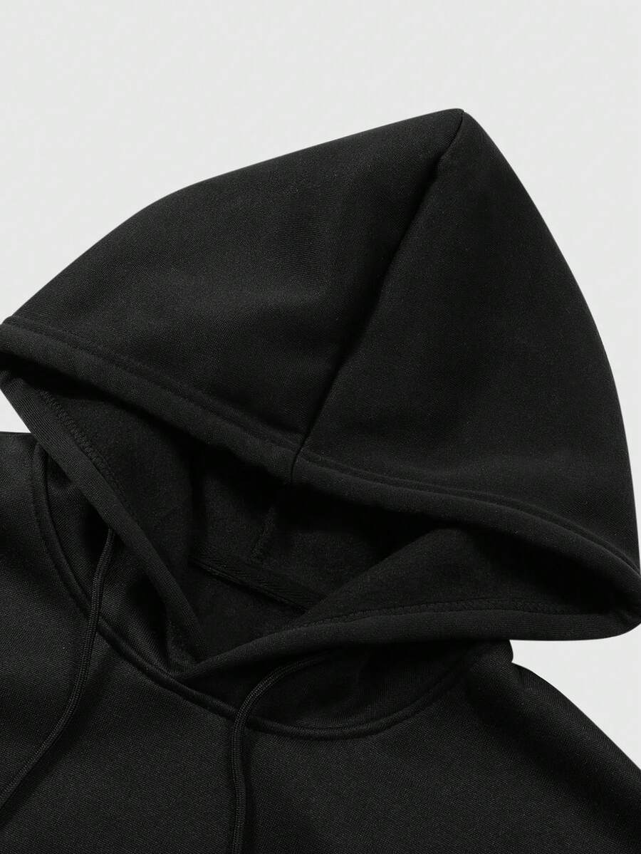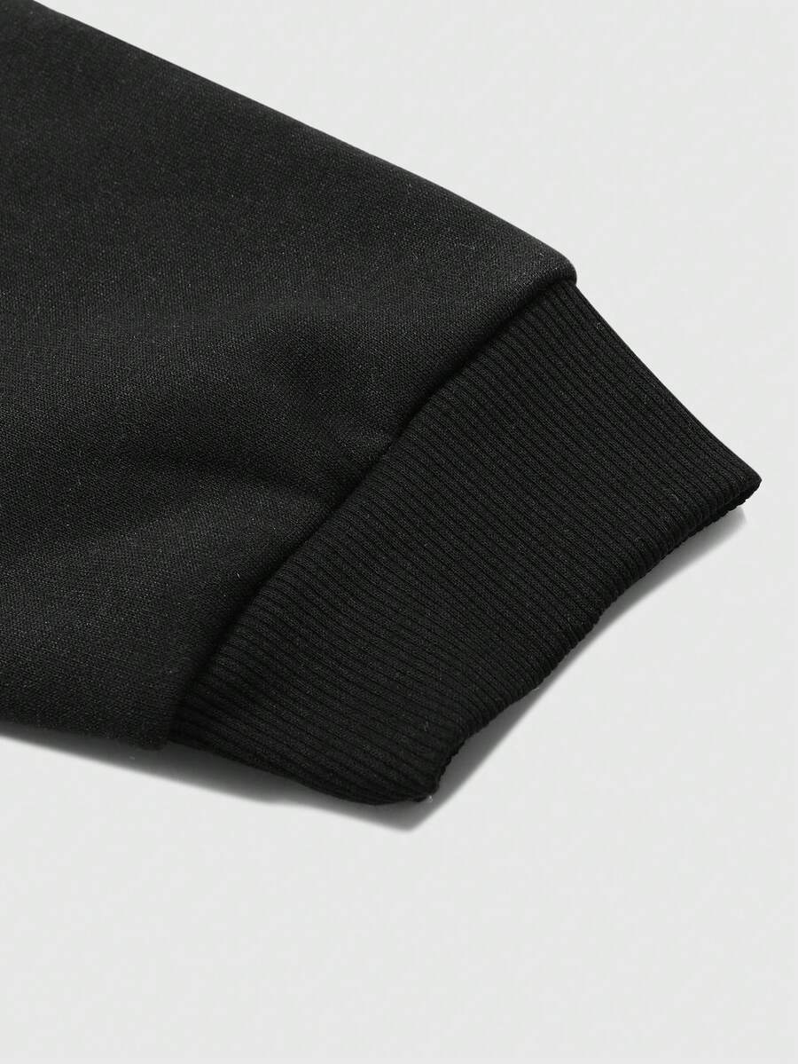 Goth بلوفر رجالي أسود كاجوال بدون جيوب، شتوي