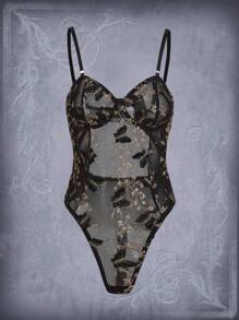 Goth بدسويت تيدي مطرز بأزهار شبكة حلقة معدني