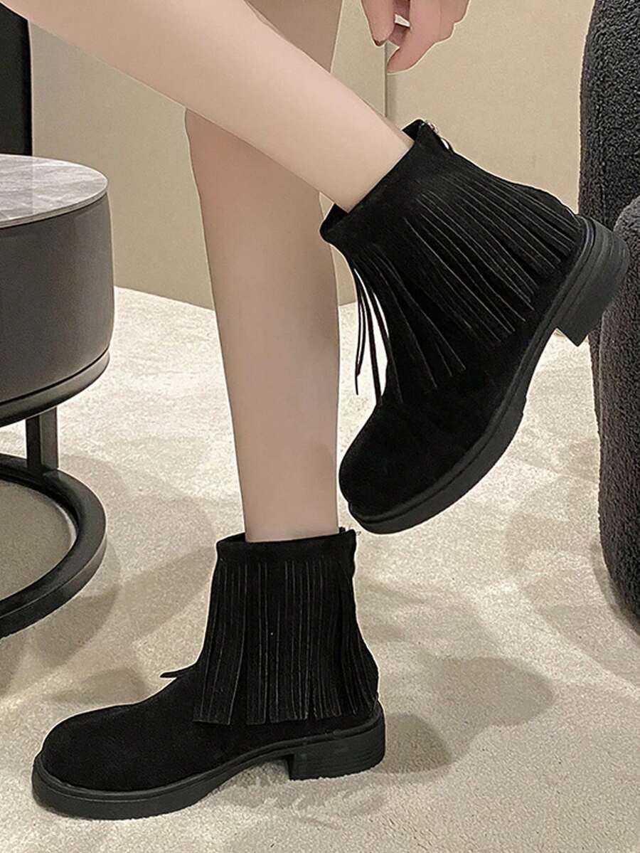 Goth جزمة برقبة طويلة مزخرف بهدب سحاب خلفي