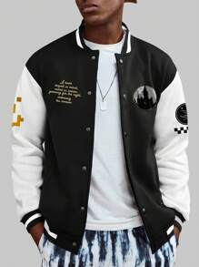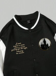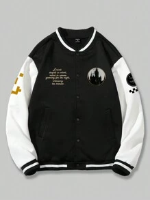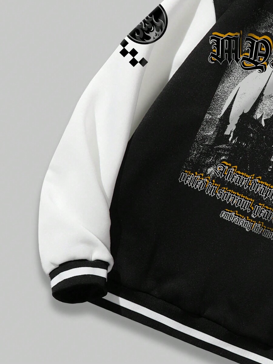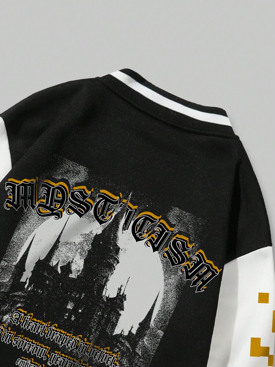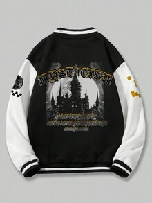Goth سترة الكلية بطباعة شعار مقلم مخطط منخفض الاكتاف للشباب