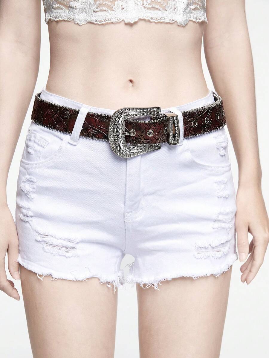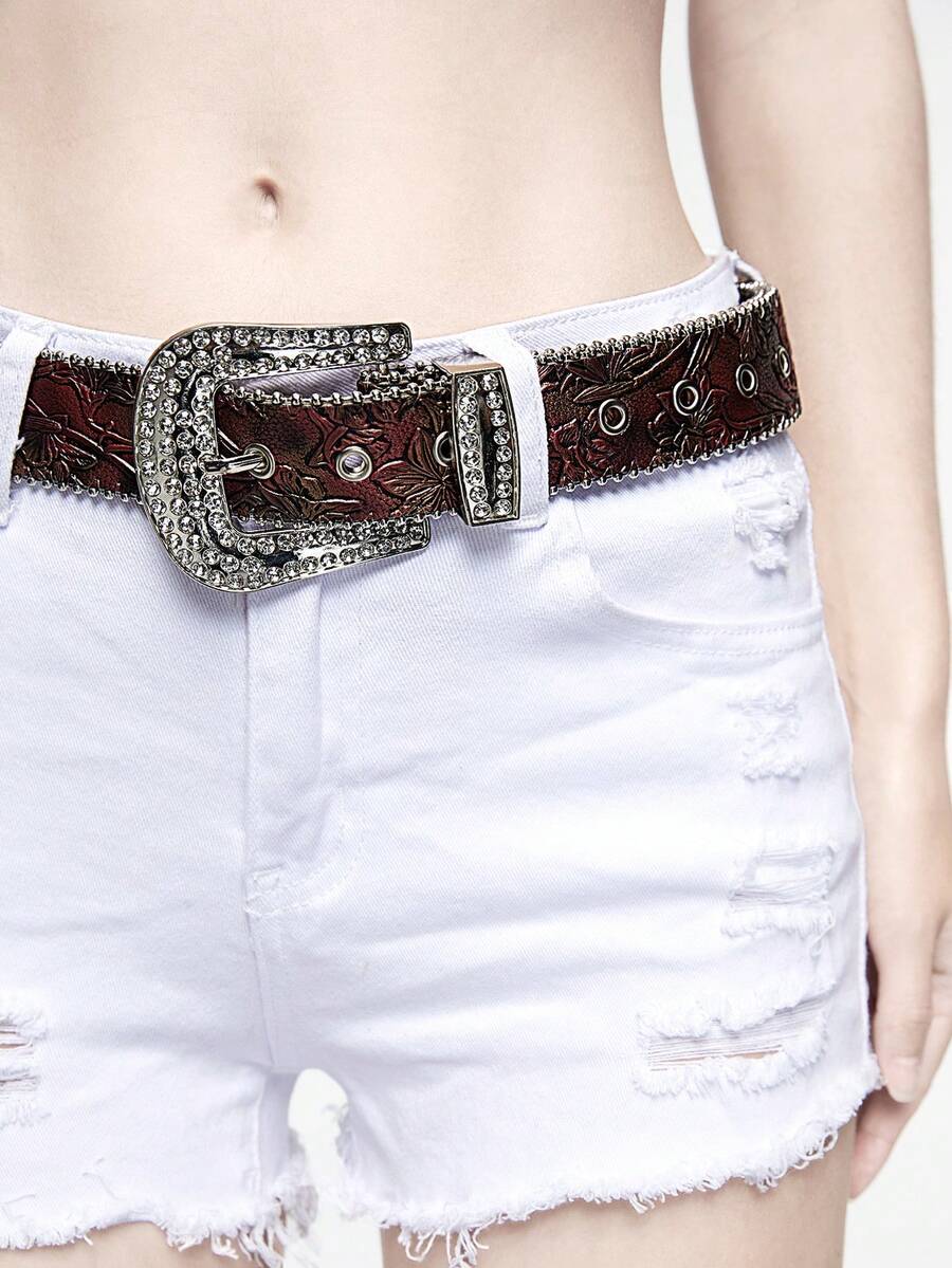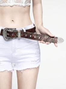 Goth حزام خصر نسائي بإبزيم محفور مزين بالراينستون والخرز