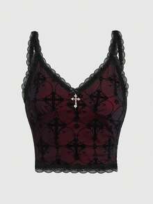 Goth السيدات الدانتيل المرقعة بروتيل تانك الأعلى