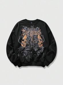 Goth بلوزة رجالية كاجوال بطباعة جمجمة وياقة طاقم، أكمام طويلة، بلوفر، خريفي