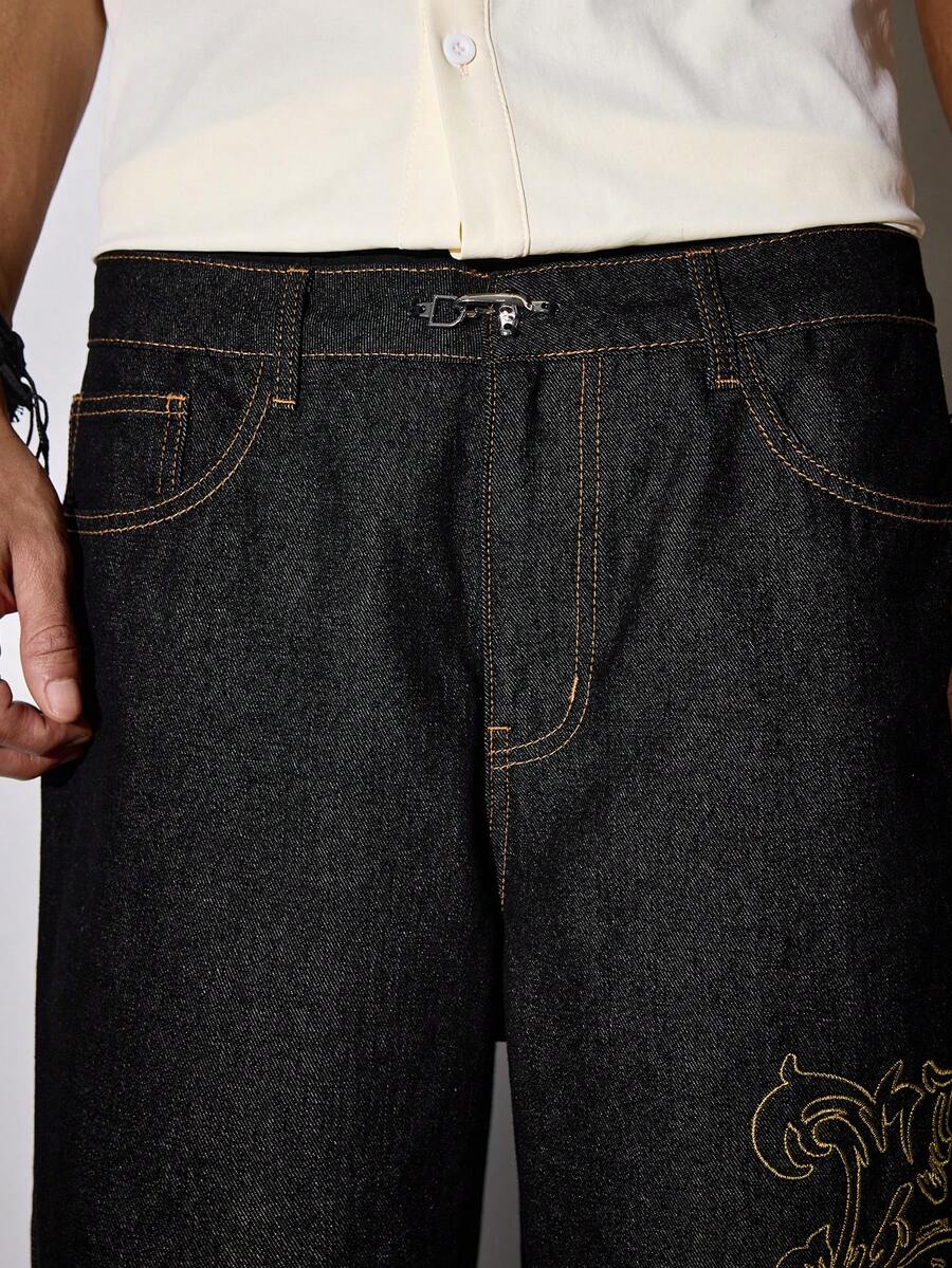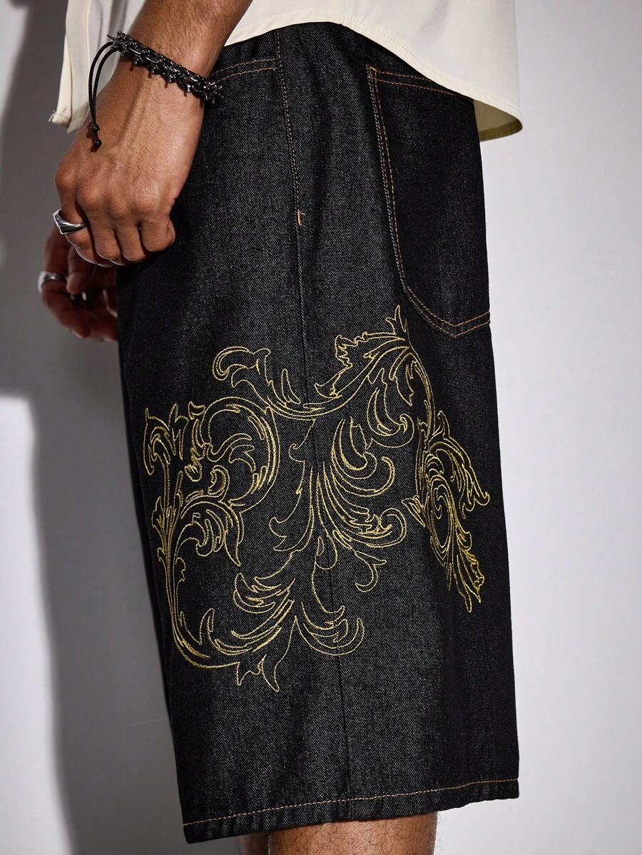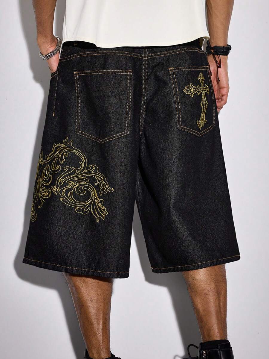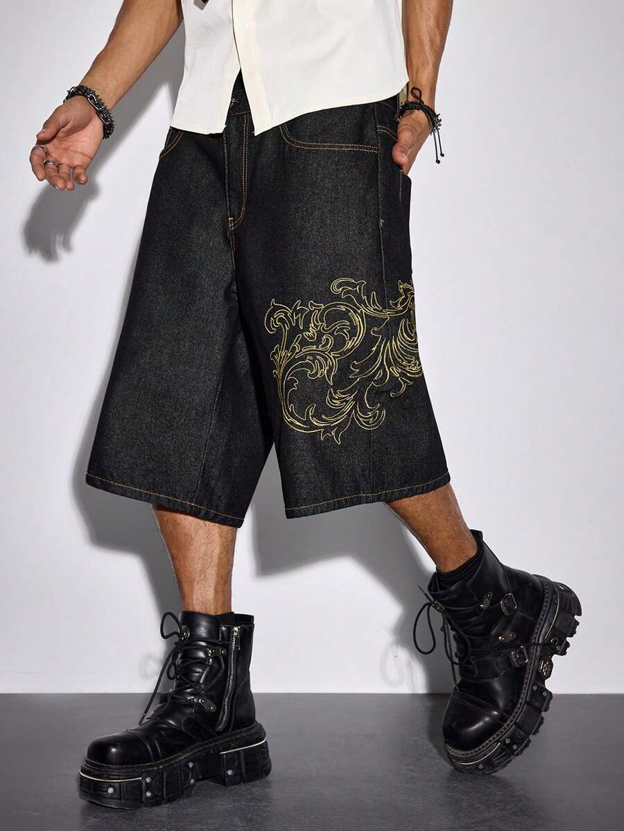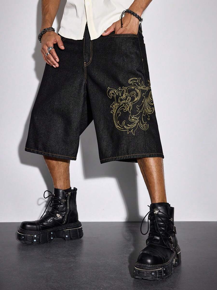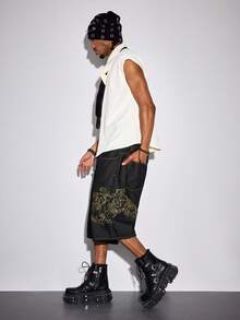 Goth شورت جينز كاجوال متعدد الاستخدامات مع حلقات للحزام للرجال