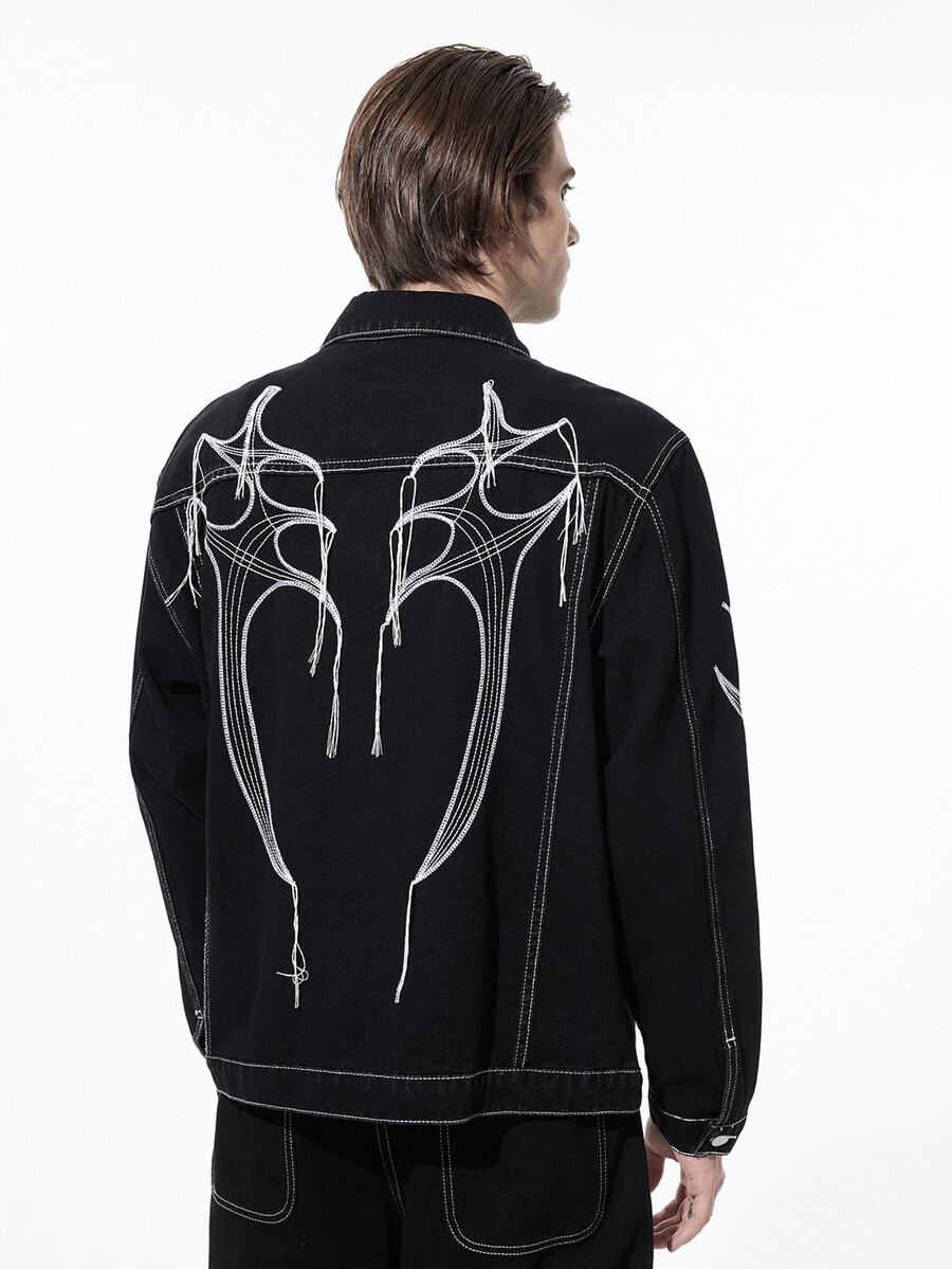 Goth جاكيت جينز طويلة الأكمام أحادية الصدر كاجوال فضفاضة مطرزة للرجال