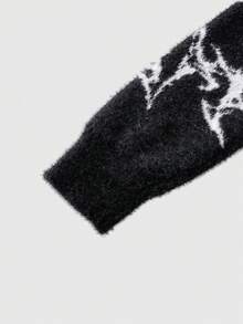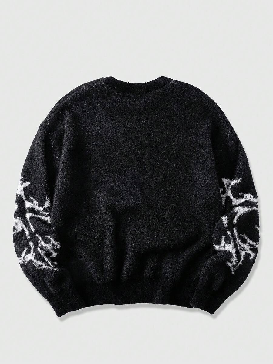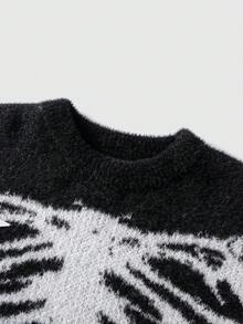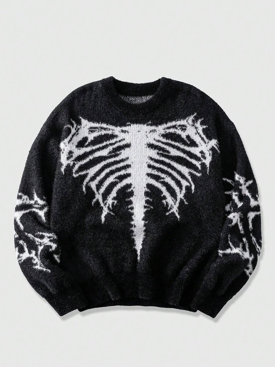 Goth كنزة صوفية كاجوال بياقة طاقم وأكمام طويلة بطبعة هيكل عظمي، خريف/شتاء