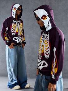 Goth هودي رجالي مطبوع عليه هيكل عظمي، كاجوال وملائم لمناسبة عيد الهالوين
