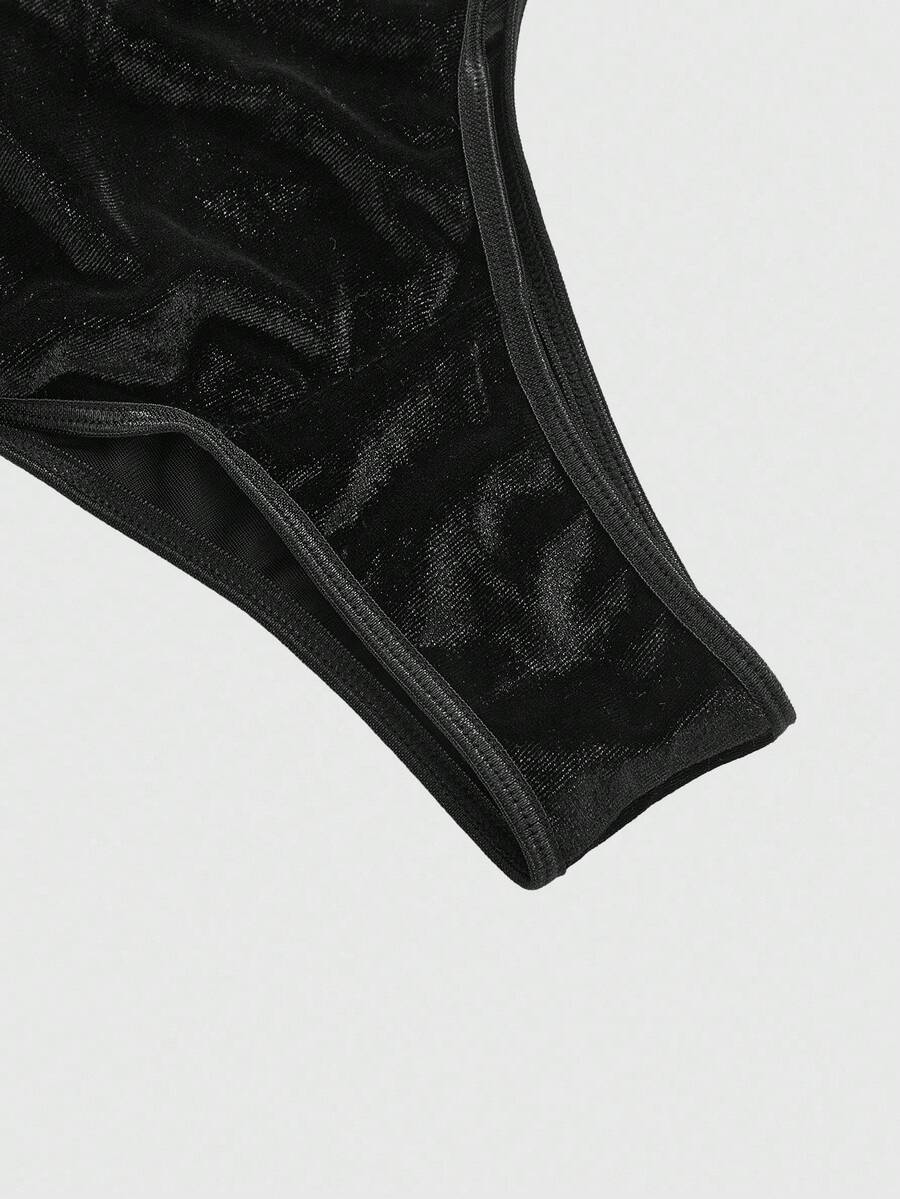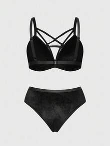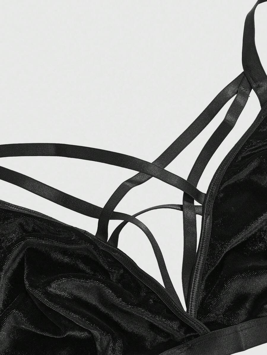 Goth مجموعة ملابس داخلية من الفيلكت بنمط نجمة خماسية للمقاسات الكبيرة