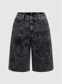 Goth شورت جينز كاجوال مقاسات كبيرة مزخرف بطباعة العنكبوت والأحرف
