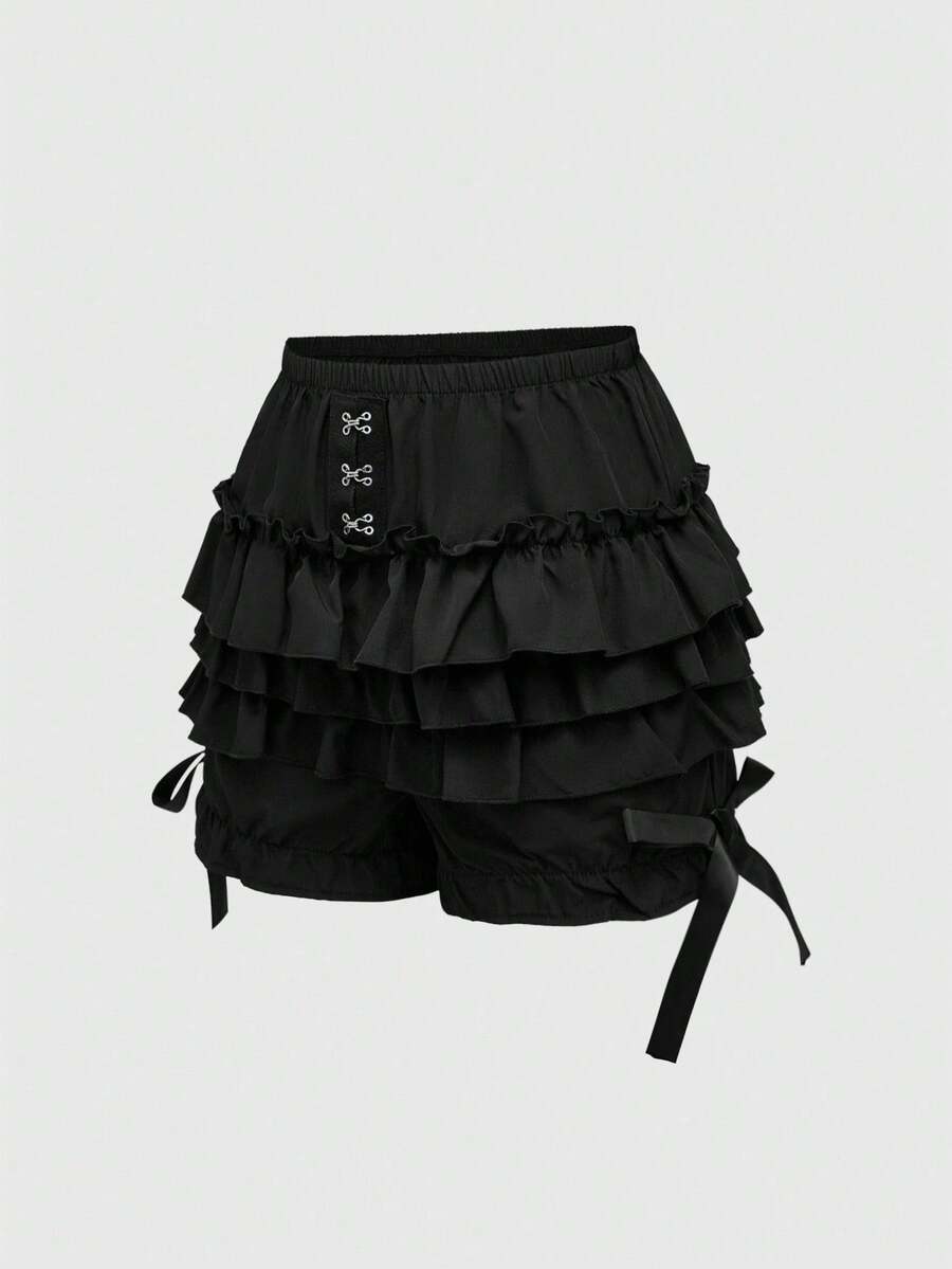 Goth سراويل قصيرة مزخرفة بالكشكشة ذات الطبقات الثلاث والعقدة بتصميم اليقطين لمقاسات كبيرة للسيدات بطراز جوثيك كيوت