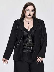 Goth جاكيت بليزر سوداء بسلسلة أزياء جوثيك للنساء بمقاسات كبيرة، خريف