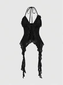Goth قميص حبال دانتيل غير متماثل الذيل، إلهامي للعطلة الرومانسية