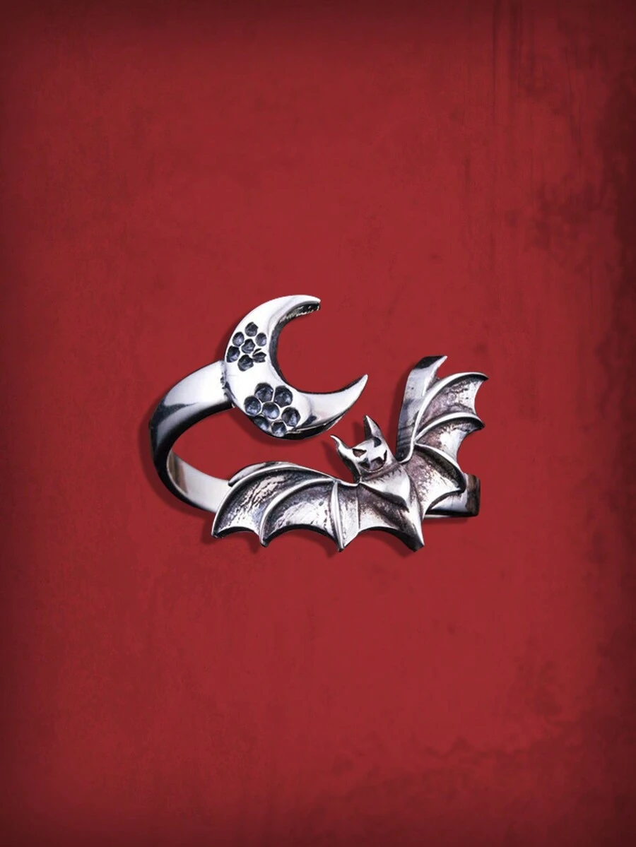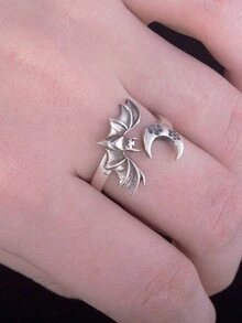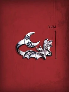 Goth خاتم مفتوح جبان سبائك الزنك خفاش & مزخرف بقمر للنساء الزخرفة اليومية قطعة واحدة