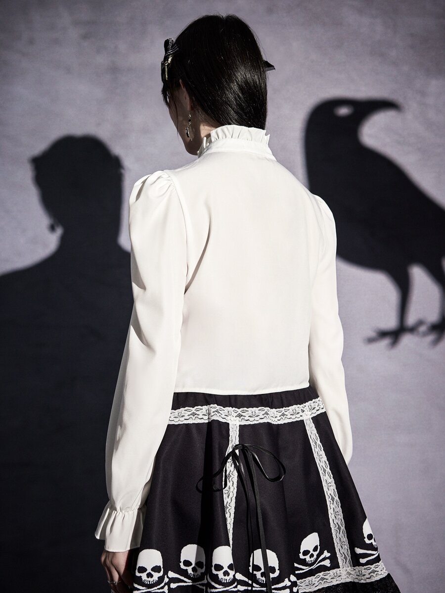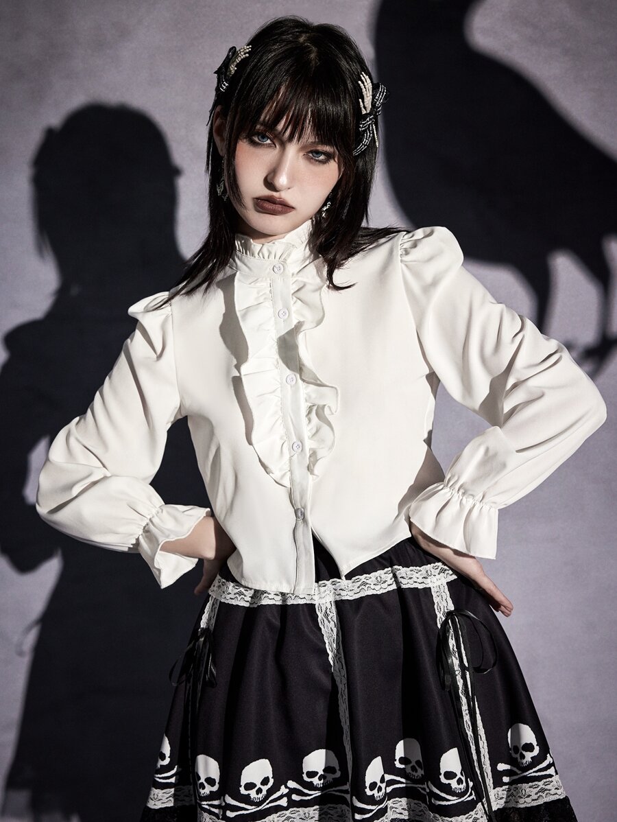 Goth بلوزة موحدة اللون مقلم بكشكش أزرار أمامية