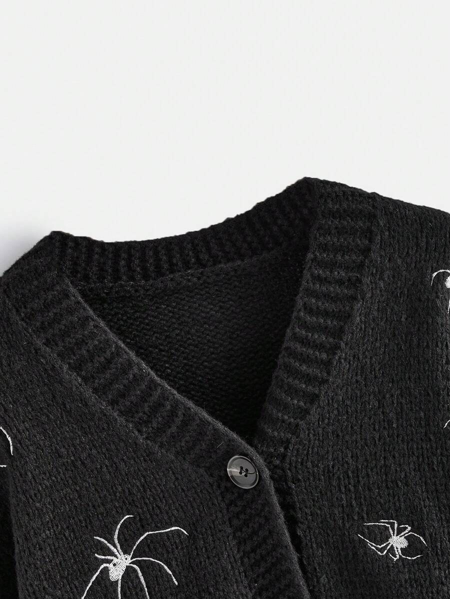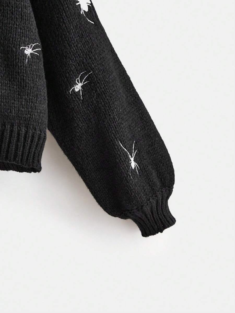 Goth كارديجان عنكبوت مطرز أكمام فانوس