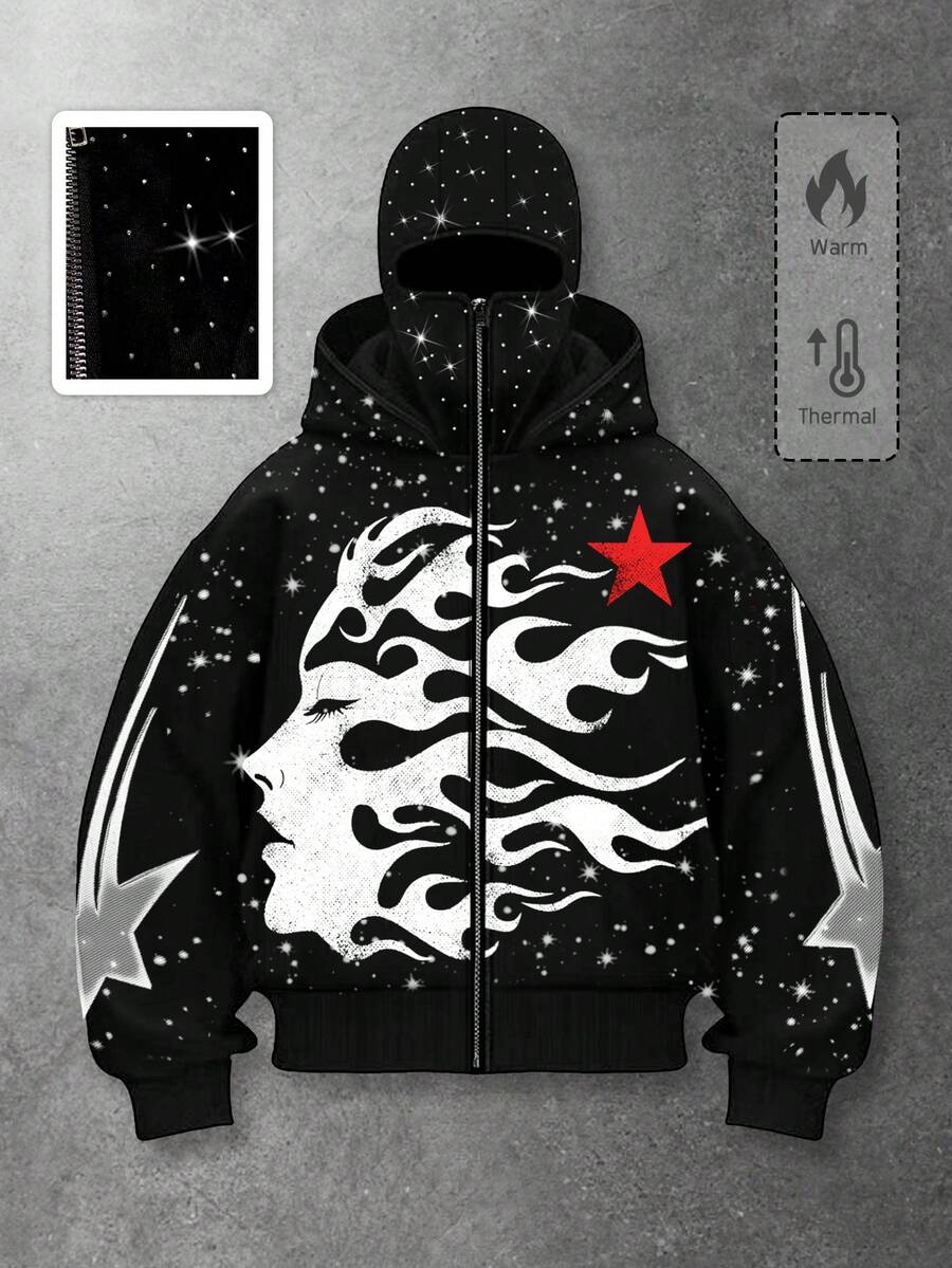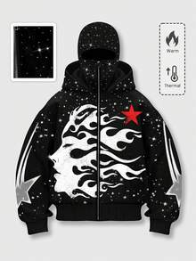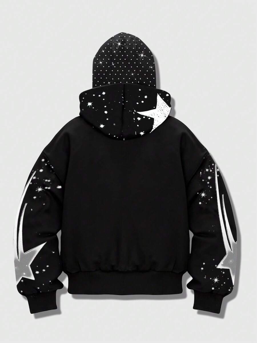 Goth جاكيت هوديي مزينة بالراين ستون بسحاب للرجال، بتصميم أنيق وداكن اللون