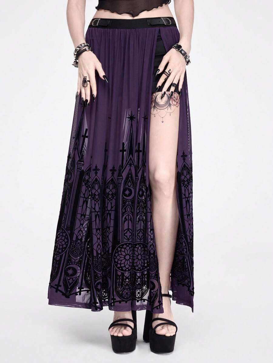 Goth تنورة على شكل حرف A ذات نمط مخملي قلعة كوثيقية قديمة الطراز