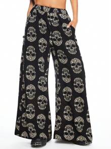 Goth بنطلون نسائي كاجوال بطباعة رسم هيكل عظمي داكن، للاستخدام اليومي