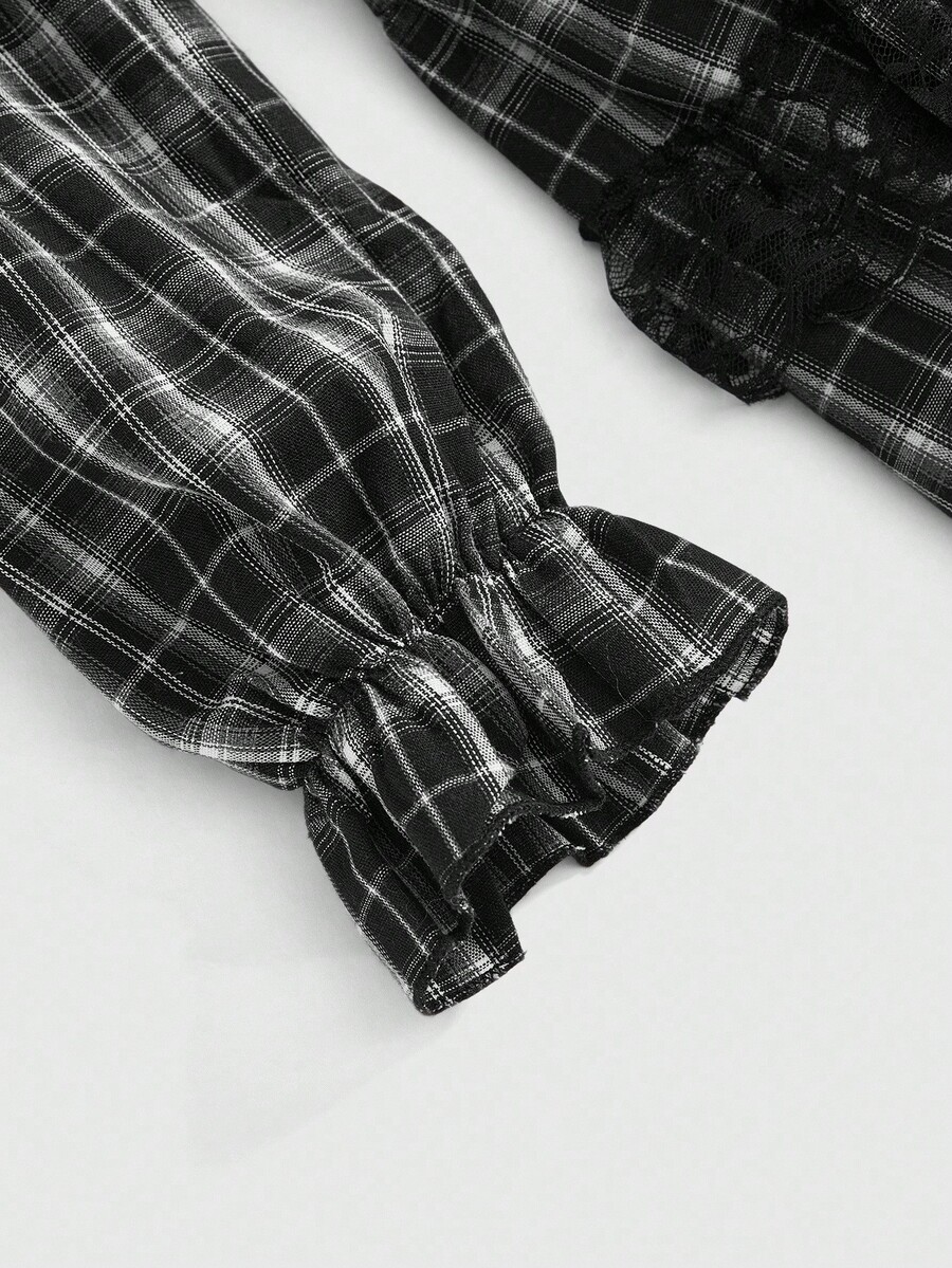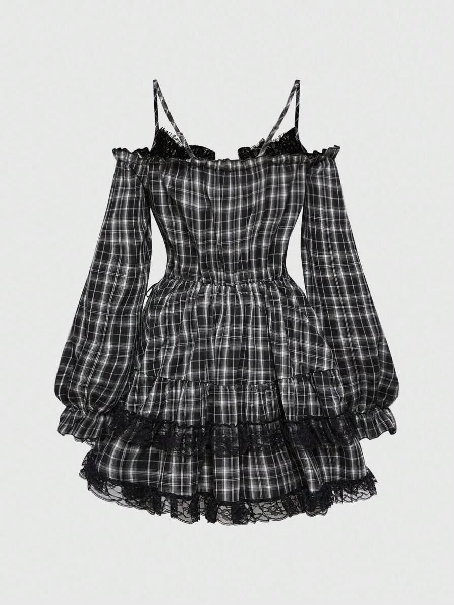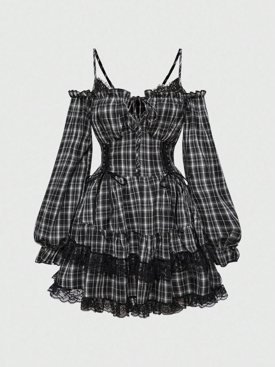 Goth فستان قصير كاجوال للنساء بأكمام طويلة وياقة منحرفة الكتف، بطراز كولييجي