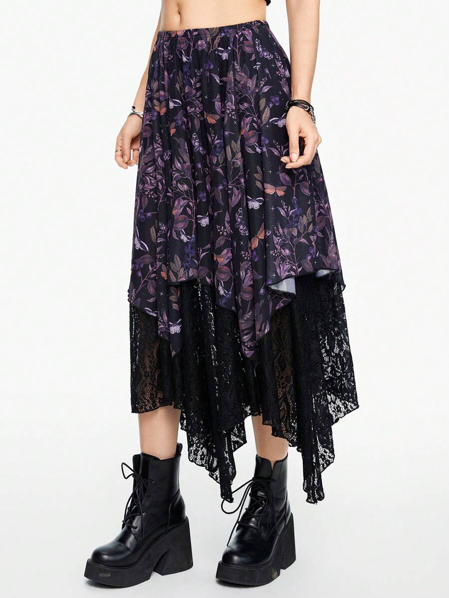 Goth تنورة نسائية عارضة غير متماثلة بألوان مختلطة للارتداء اليومي، صيفية