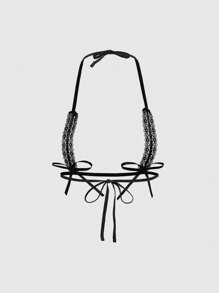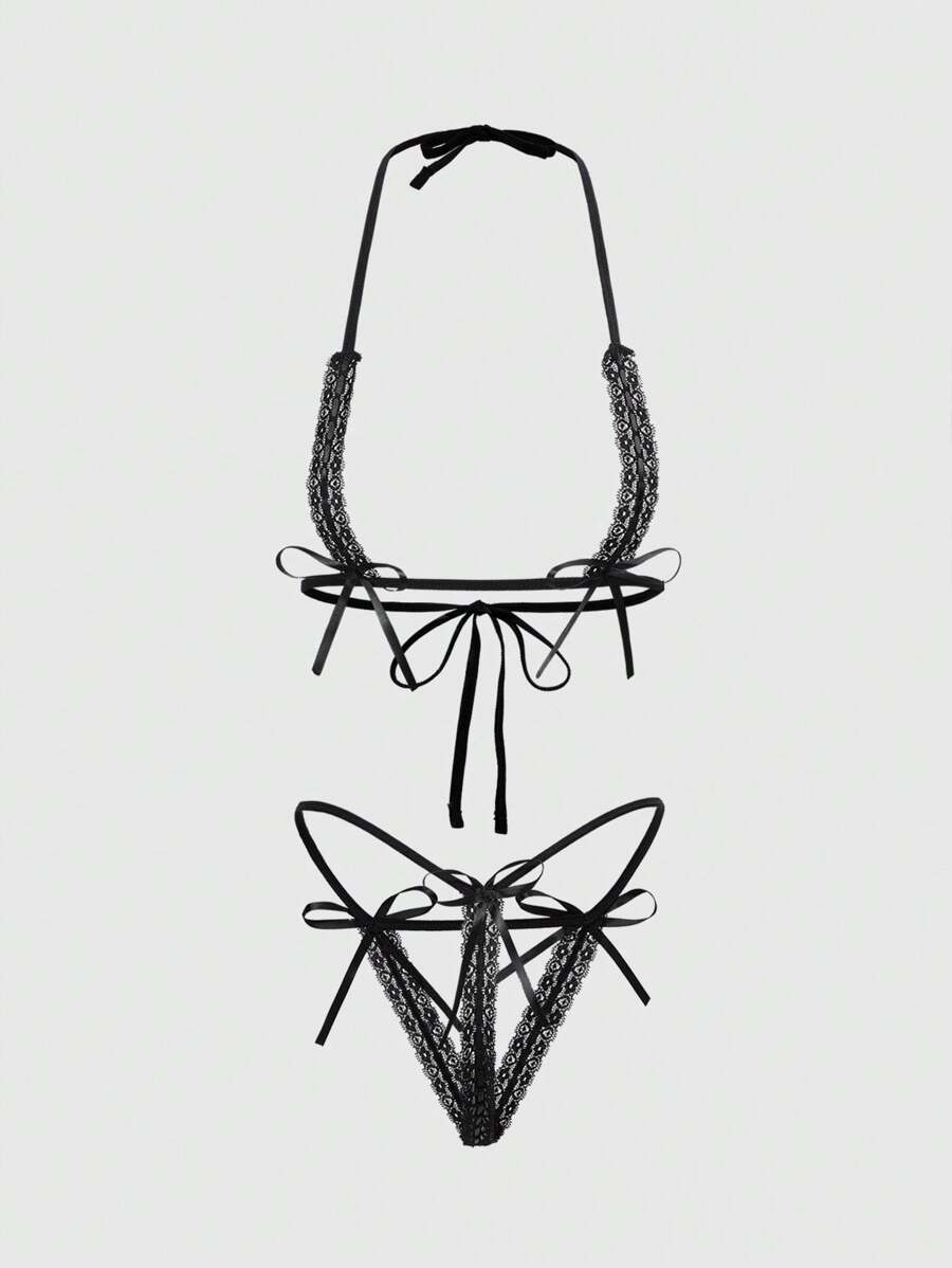 Goth طقم ملابس داخلية نسائية بتصميم دانتيل وفيونكة جذاب