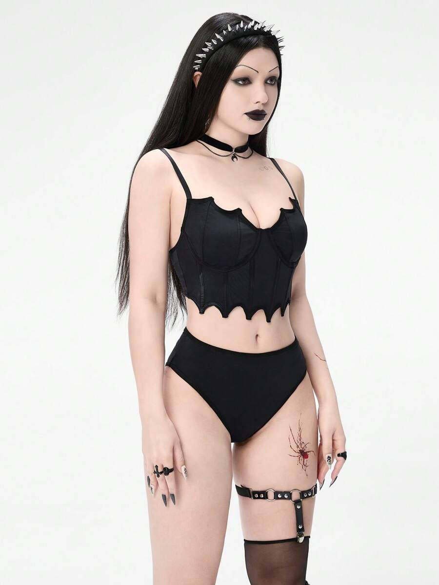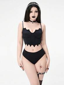 Goth بيكيني نساء لون أحادي مشد بحمالات رفيعة وقاع بسيط، صيفي
