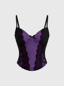 Goth توب كامسول به ربطة خصر مزين بالدانتيل المتباين لحفلات رأس السنة الجديدة، ذو طابع جذاب