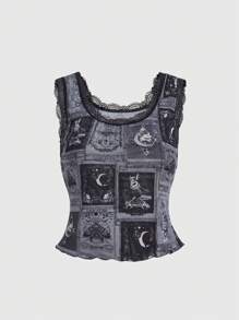 Goth توب دانتيل شبكي متباين بديكور غوثي للسيدات