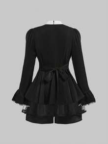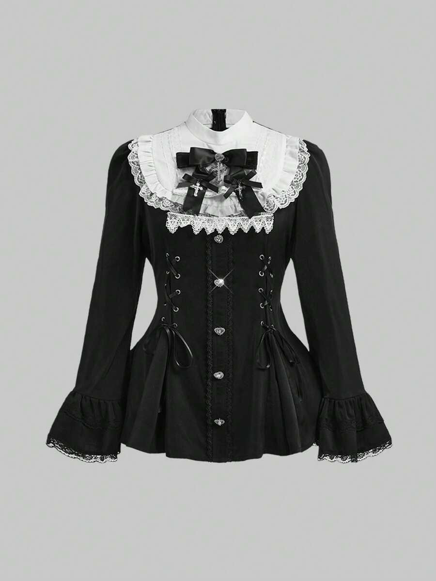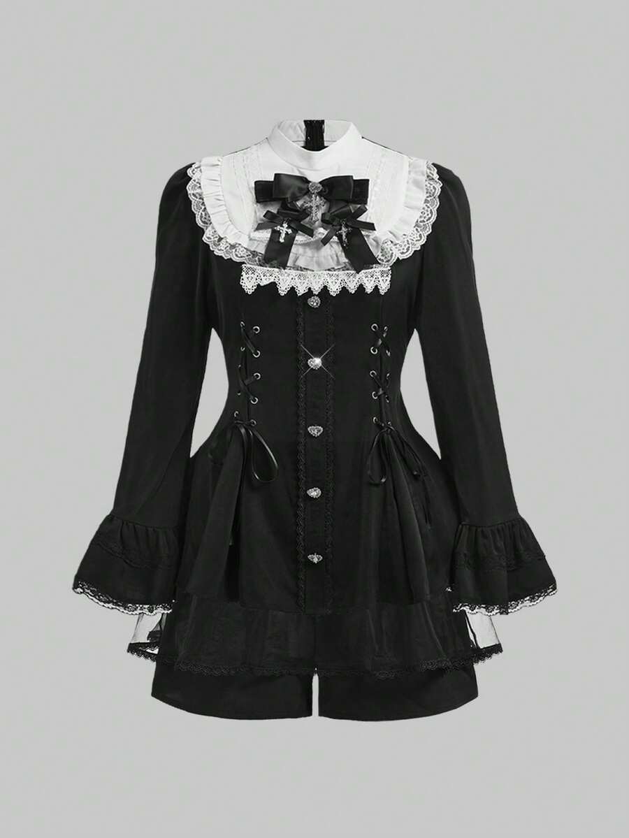 Goth طقم قميص وشورت مكون من قطعتين، يتضمن ياقة بيتر بان مع ربطة عنق وقلادة صليب بطراز جوثي داكن