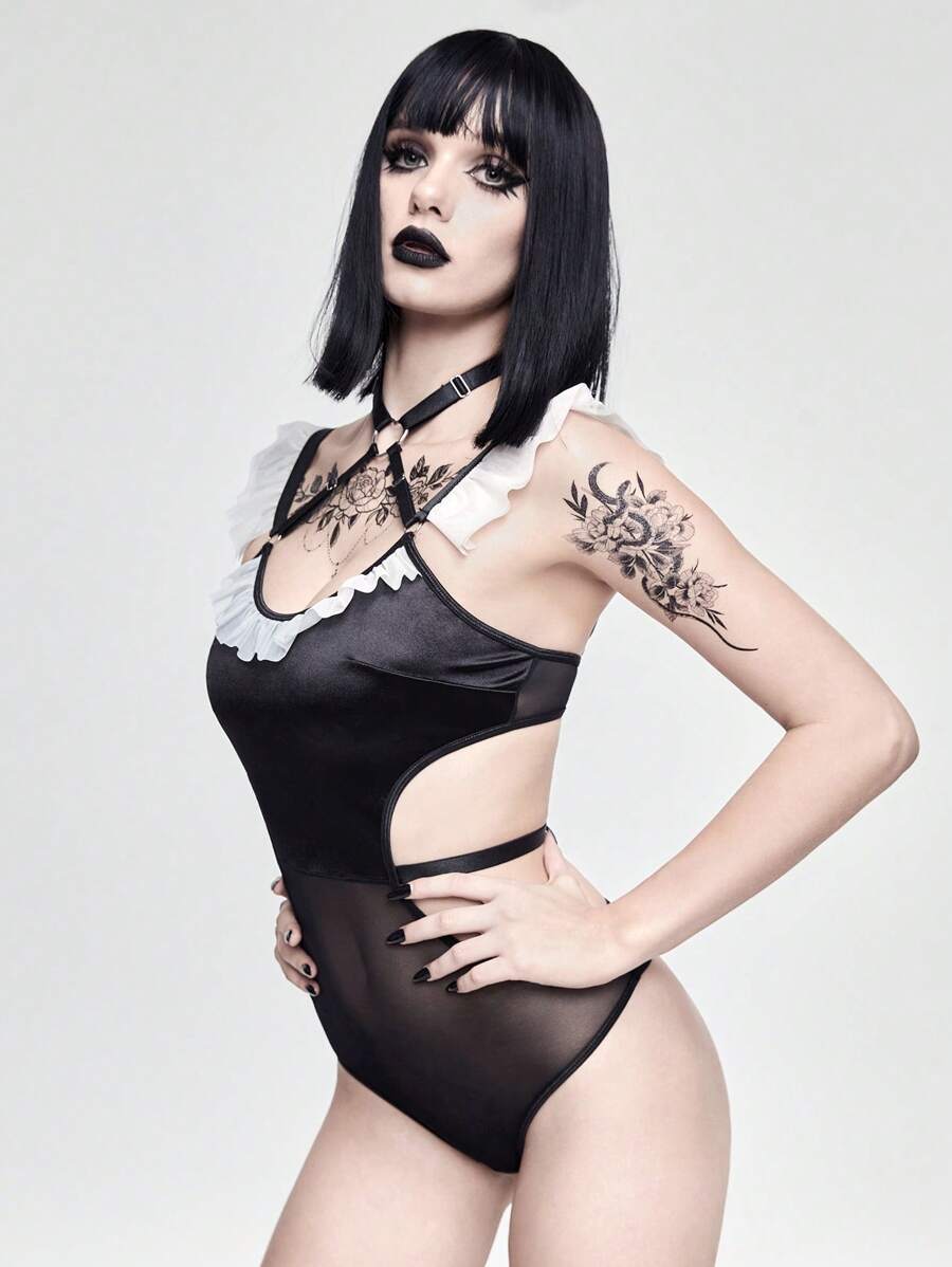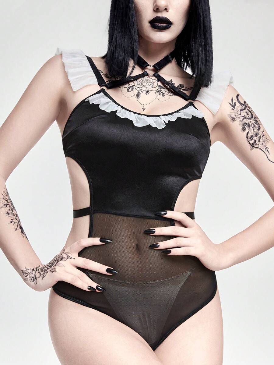 Goth بدلة كاملة قلب أسود مفرغة جذابة
