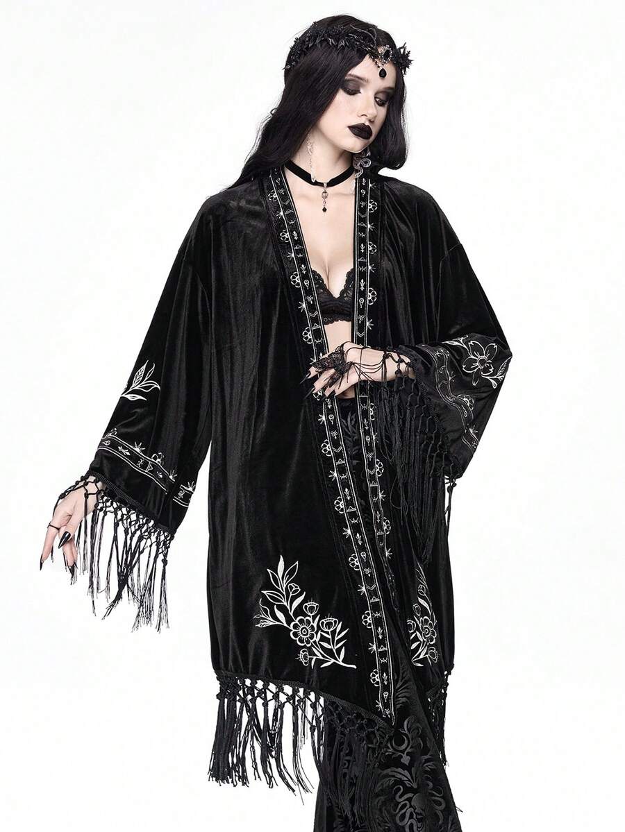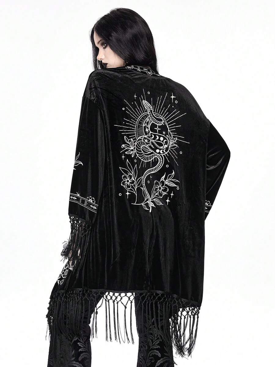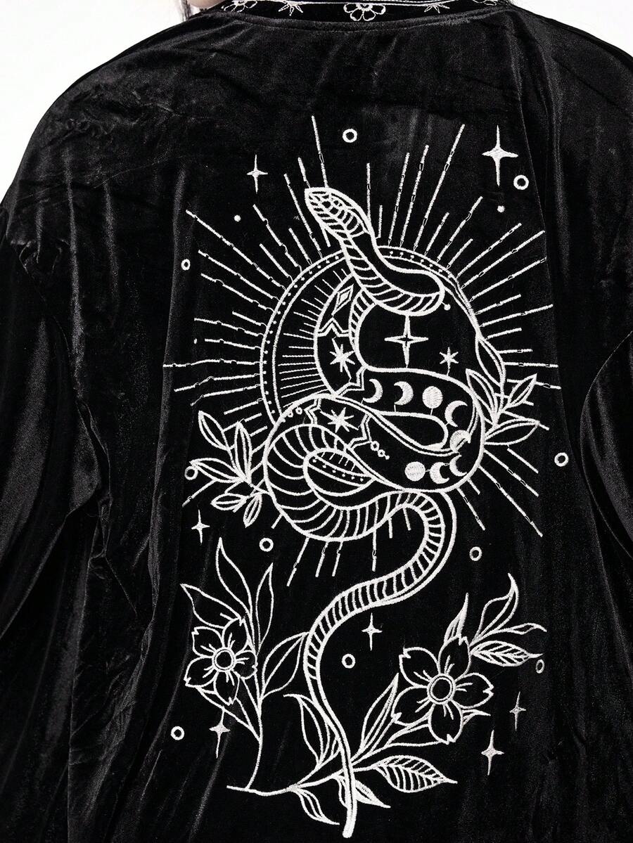 Goth كارديجان مخمل مطرز بالثعبان والنبات بطراز جوثيك