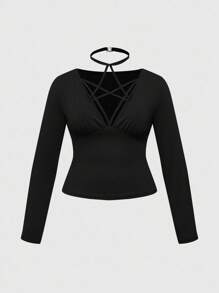 Goth قميص نسائي ضيق مرن ذو لون أحادي بطراز جوثيك، مقاسات كبيرة، مناسب للخريف/الشتاء، هالوين