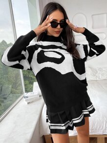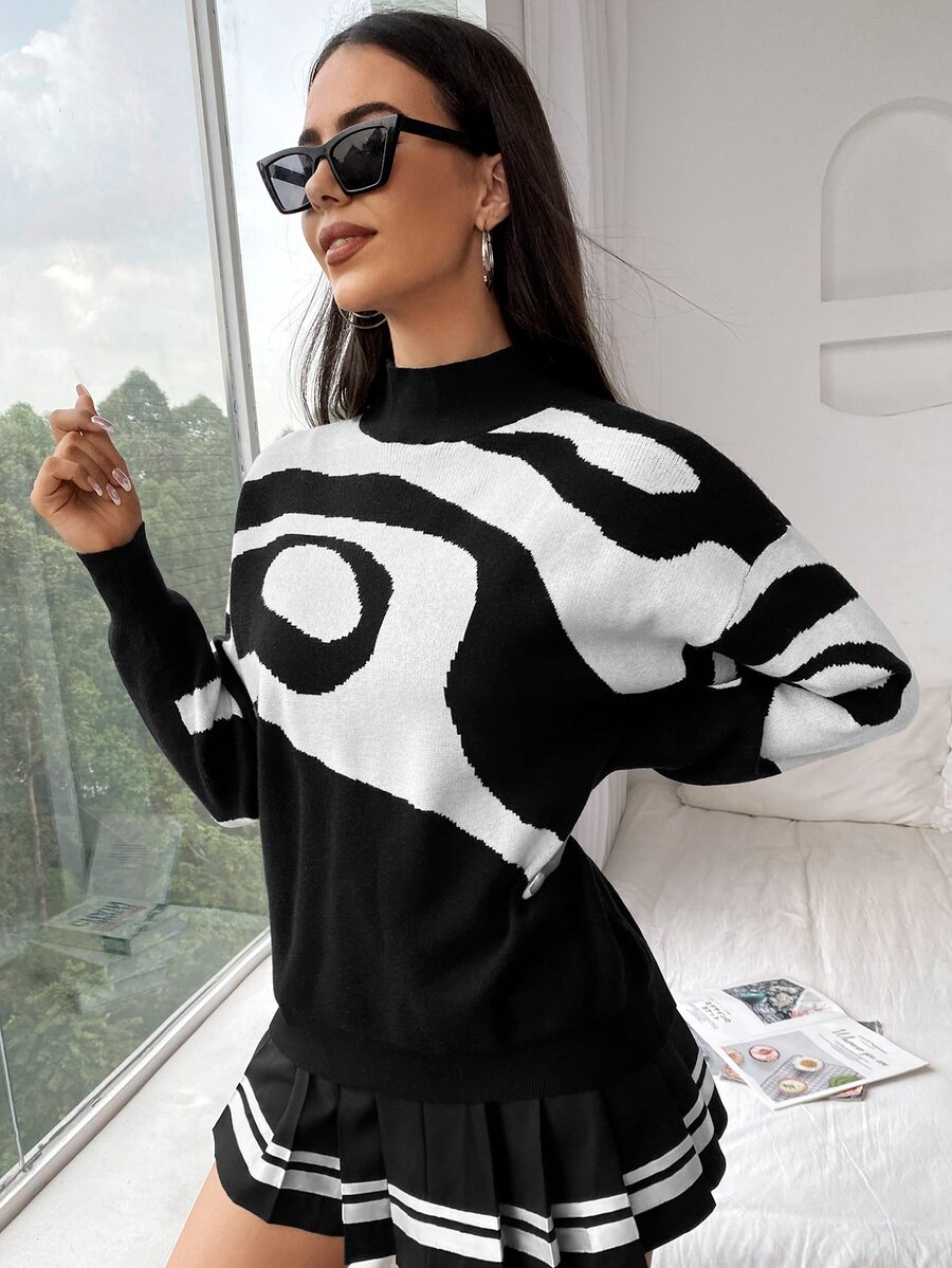 لباس علوي بياقة عالي منخفض الاكتاف وبجرافيك