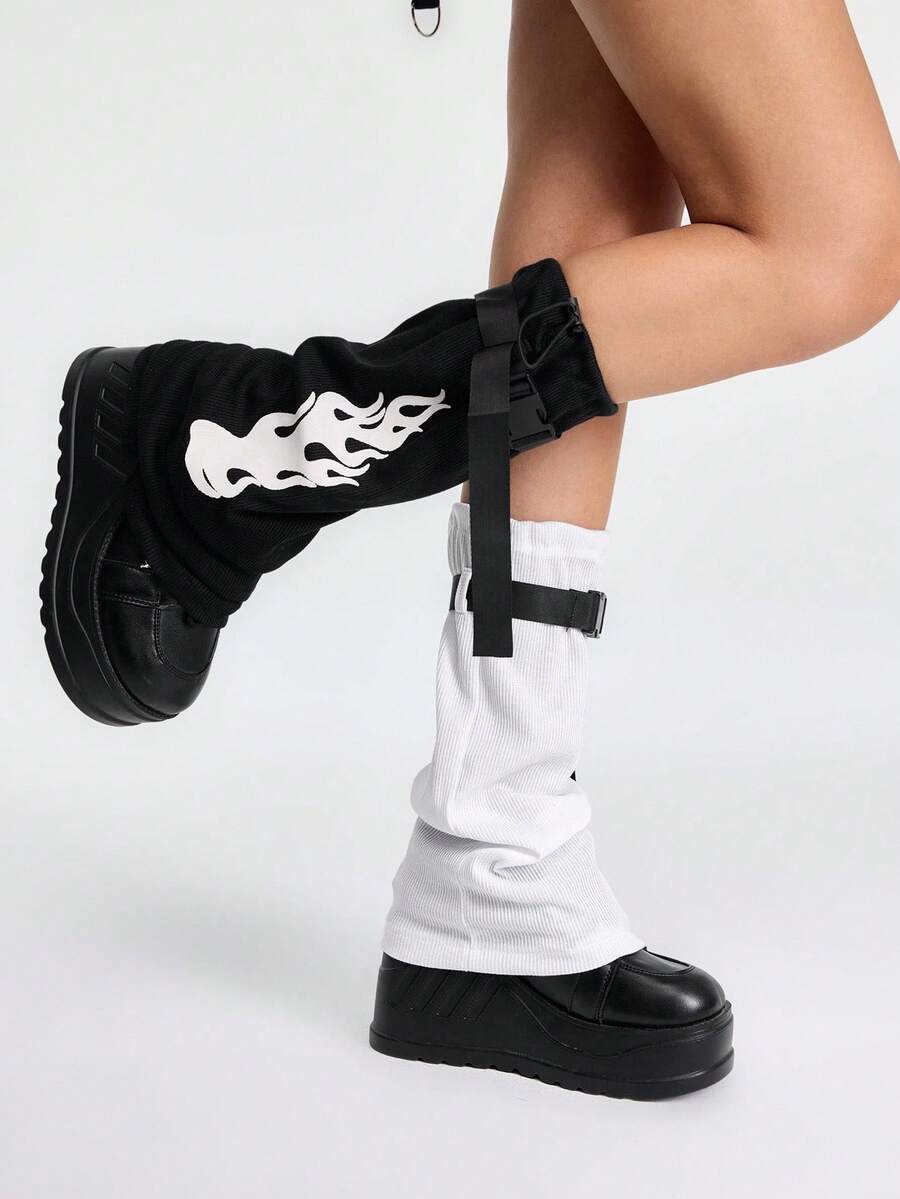 Grunge Punk زوج جوارب ذات نمط أسود وأبيض غير متماثل مع طقم من زوج من الجوارب الطويلة للنساء