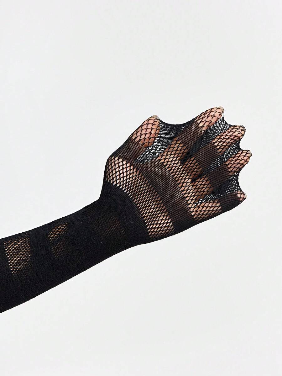 Grunge Punk زوج واحد من جوارب الشبكة البحرية المجوفة غير المتماثلة المخططة، جواريب ضيقة مثيرة، ملابس علوية رقيقة للغاية