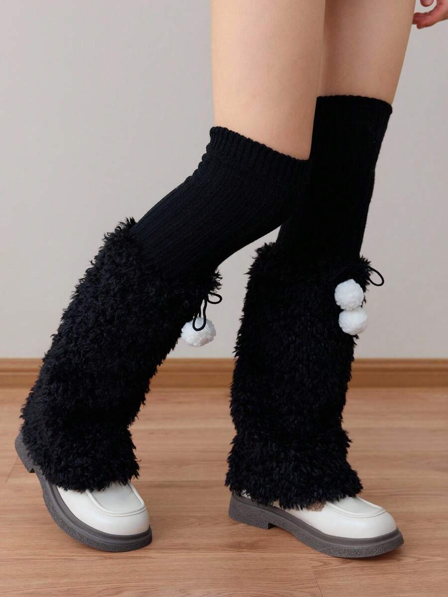 Grunge Punk زوج واحد من الساقين الطويلة والسوداء المكسوة بالفرو الناعم للنساء
