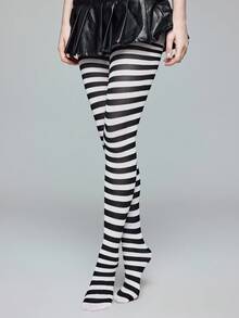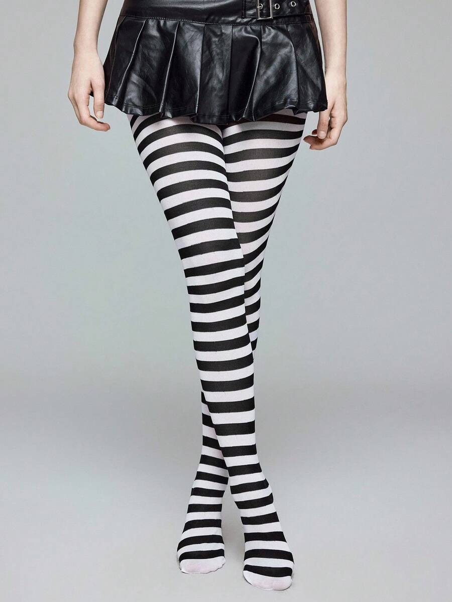 Grunge Punk زوج من جوارب ذات خطوط سوداء وبيضاء بطراز جوثي