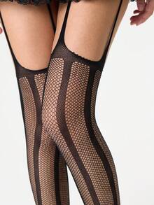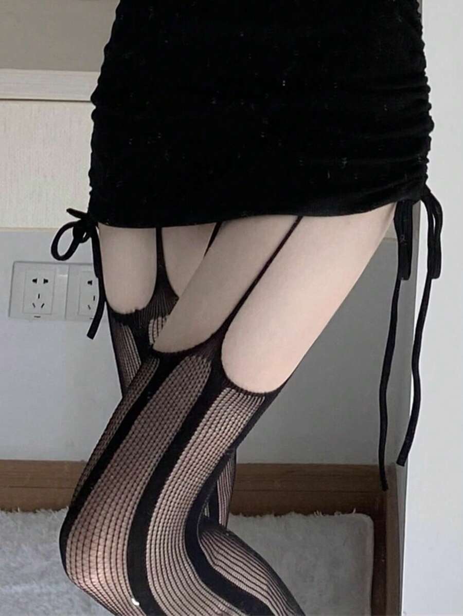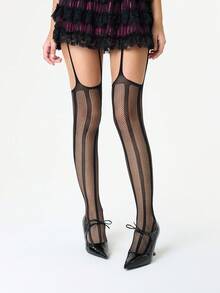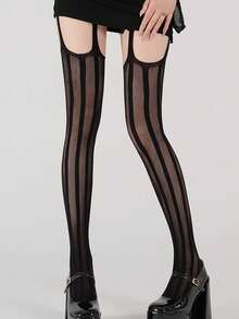 Grunge Punk زوج من جوارب معلقة سوداء ذات طابع جنسي وبسيط، جوارب شفافة رفيعة ذات خطوط عمودية، بتصميم حسي وبسيط