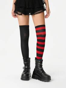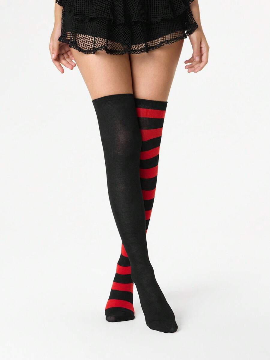 Grunge Punk زوج جوارب طويلة فوق الركبة للنساء ذات لون غير متماثل وارتداد عالي المرونة