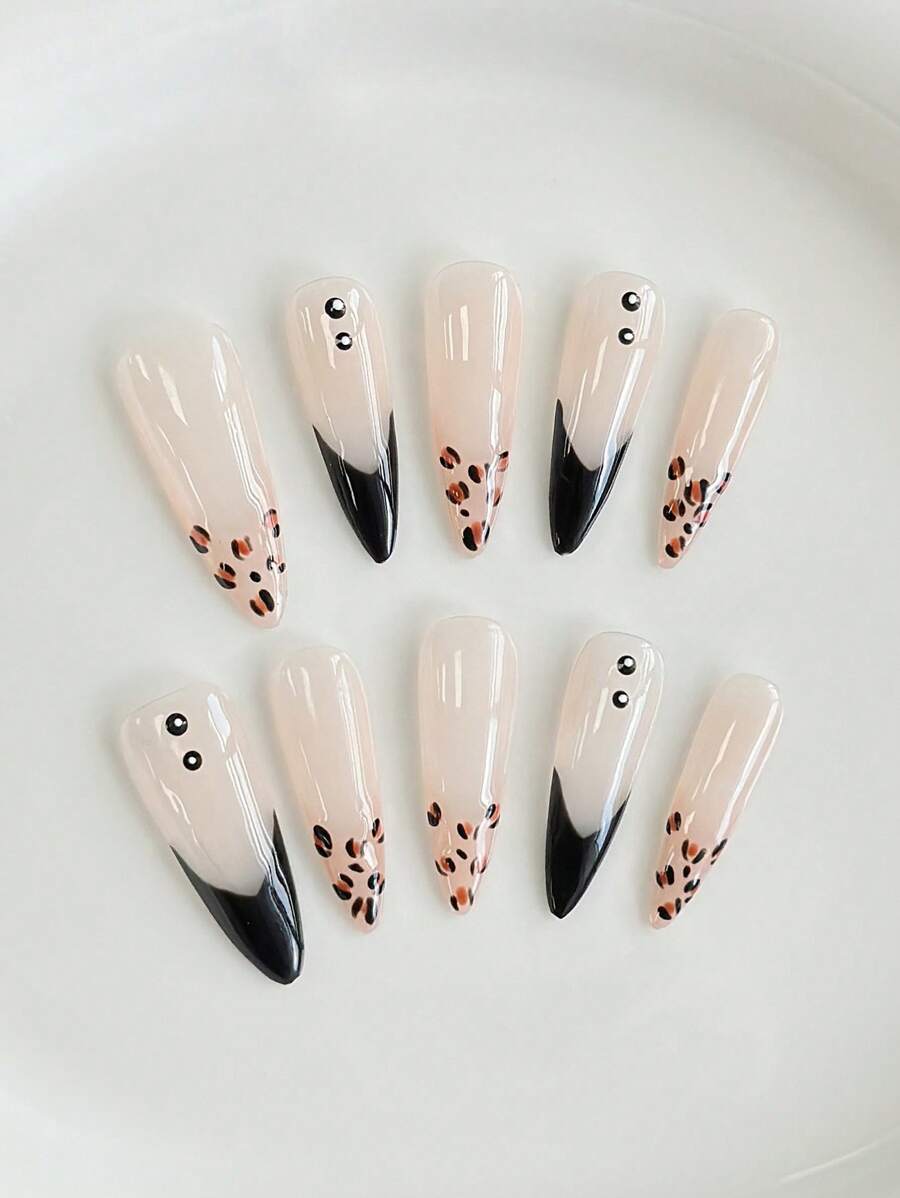 Grunge Punk 10 قطعة أظافر صناعية مصنوعة يدويًا بطبعة نمر ذات جودة عالية + 3 قطع ملصقات لاصقة الجانب، طراز جوثي Y2K، ديكورات أظافر قابلة للإزالة وإعادة الاستخدام، مناسبة للمهرجانات والحفلات والرقص والاستخدام اليومي، هالوين