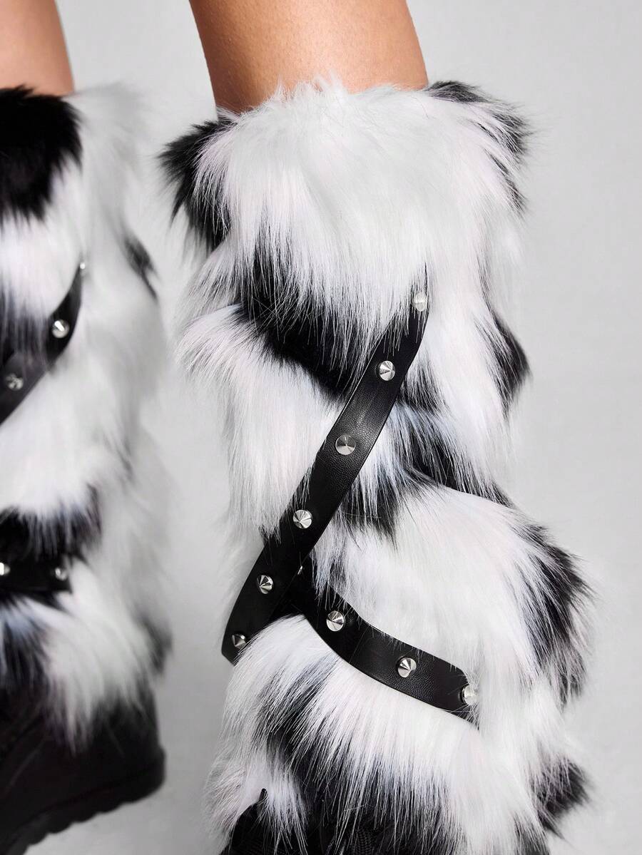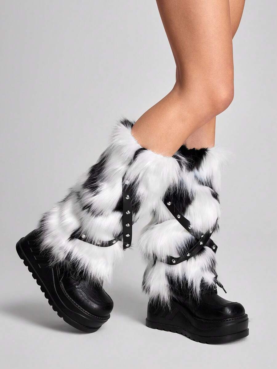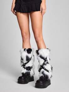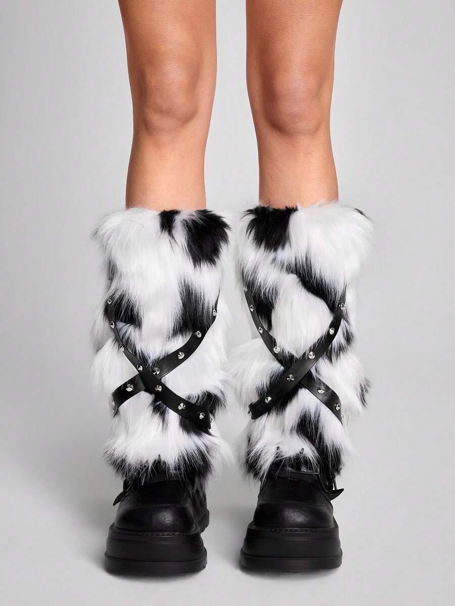 Grunge Punk زوج من أغطية الساق الدافئة والأنيقة ذات طبعة نمر للنساء