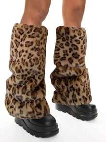Grunge Punk زوج من أغطية الساق الدافئة والأنيقة ذات طبعة نمر للنساء