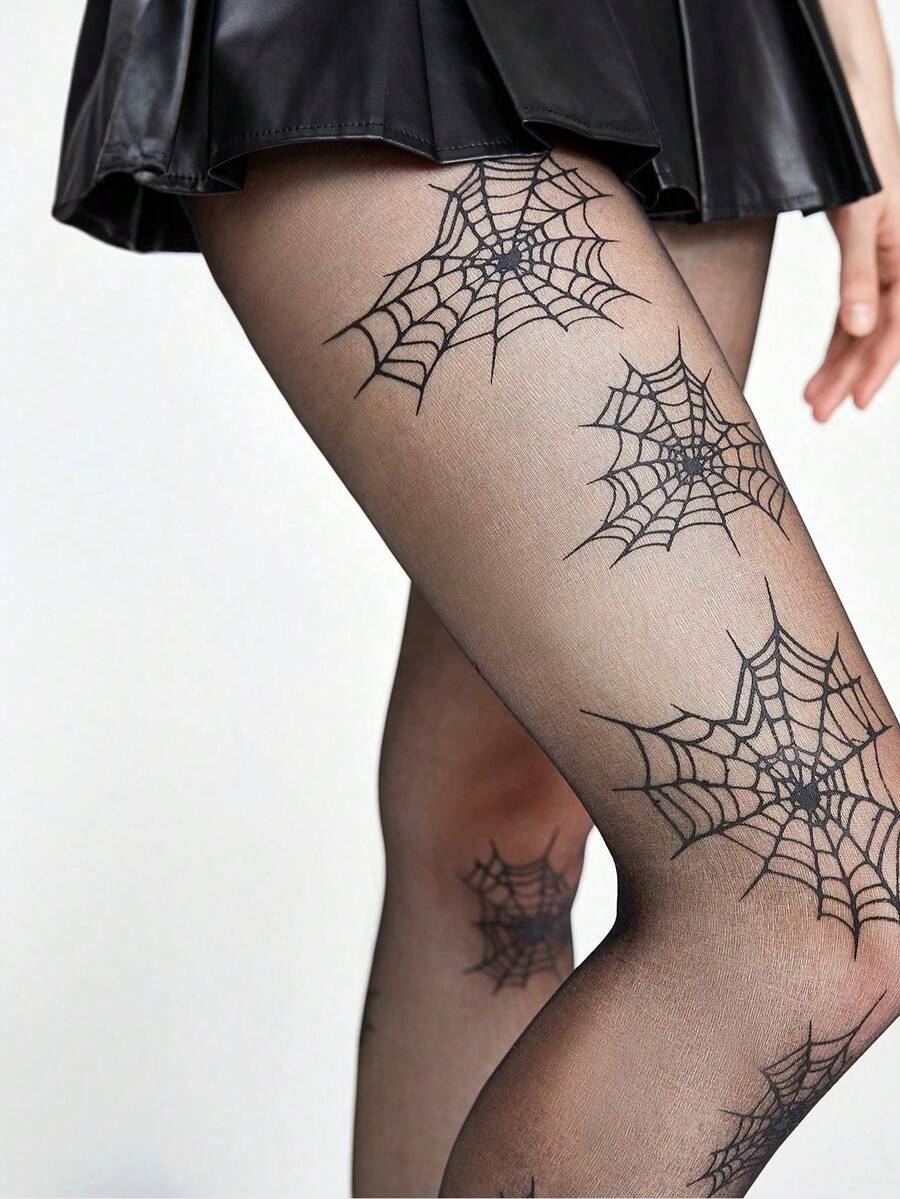 Grunge Punk جوارب طويلة أنيقة بنمط شبكة العنكبوت غير متماثل باللون الأسود، جوارب نسائية مثيرة، هالوين