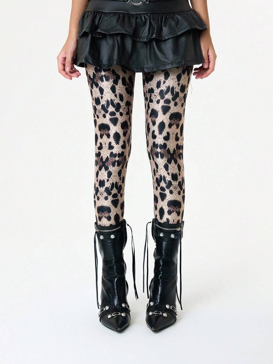 Grunge Punk 1 قطعة جوارب ضيقة/بنطلون ضيق/سروال ضيق بطبعة نمر جذابة للنساء