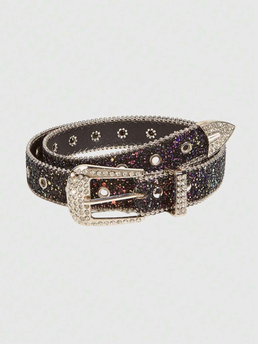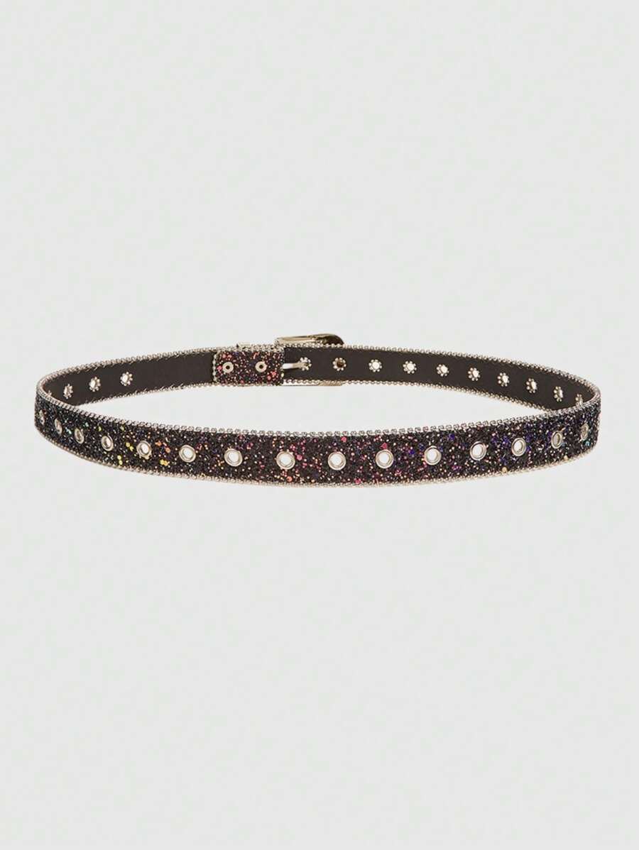 Grunge Punk قطعة واحدة بحزام خصر مطبوع بطراز بانك ريترو Y2K، إكسسوار بحزام شبابي أنيق بإبزيم من اللؤلؤ