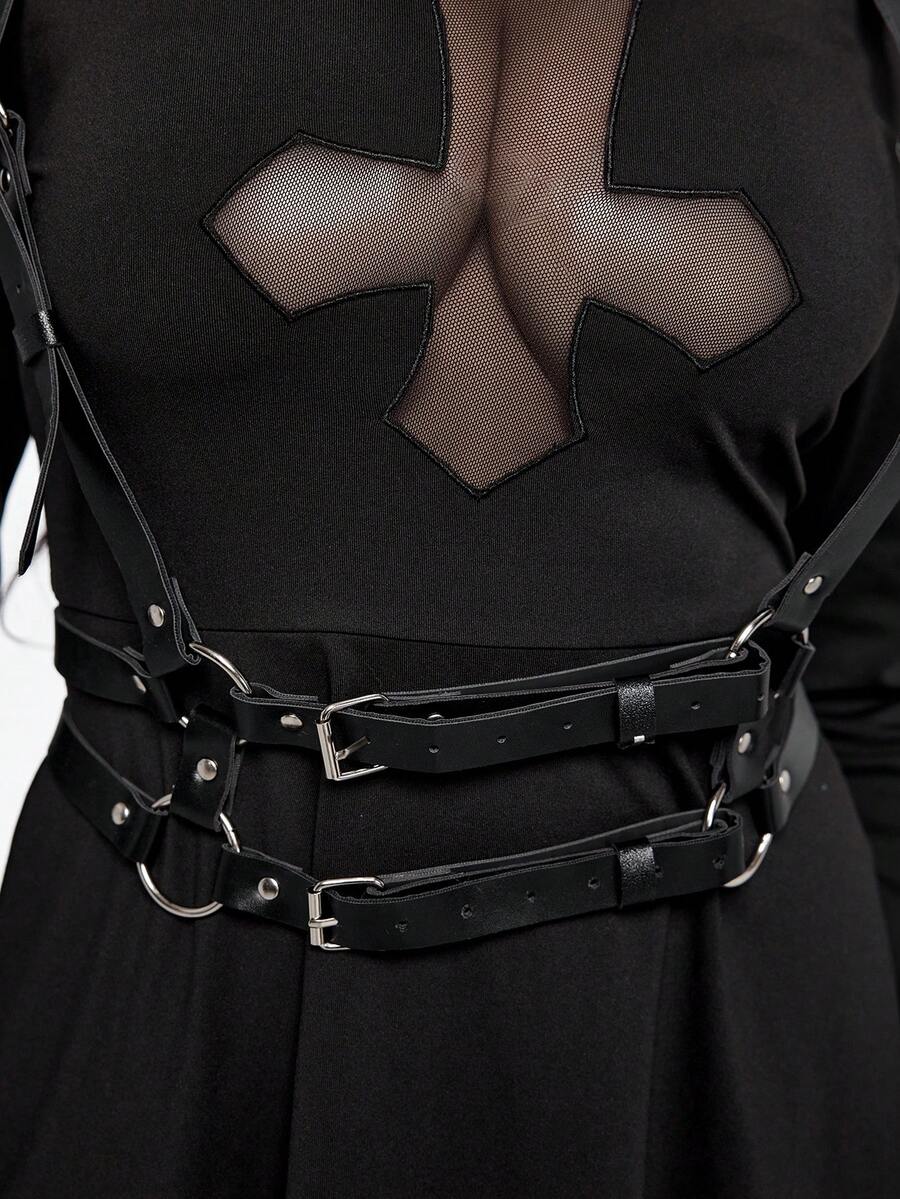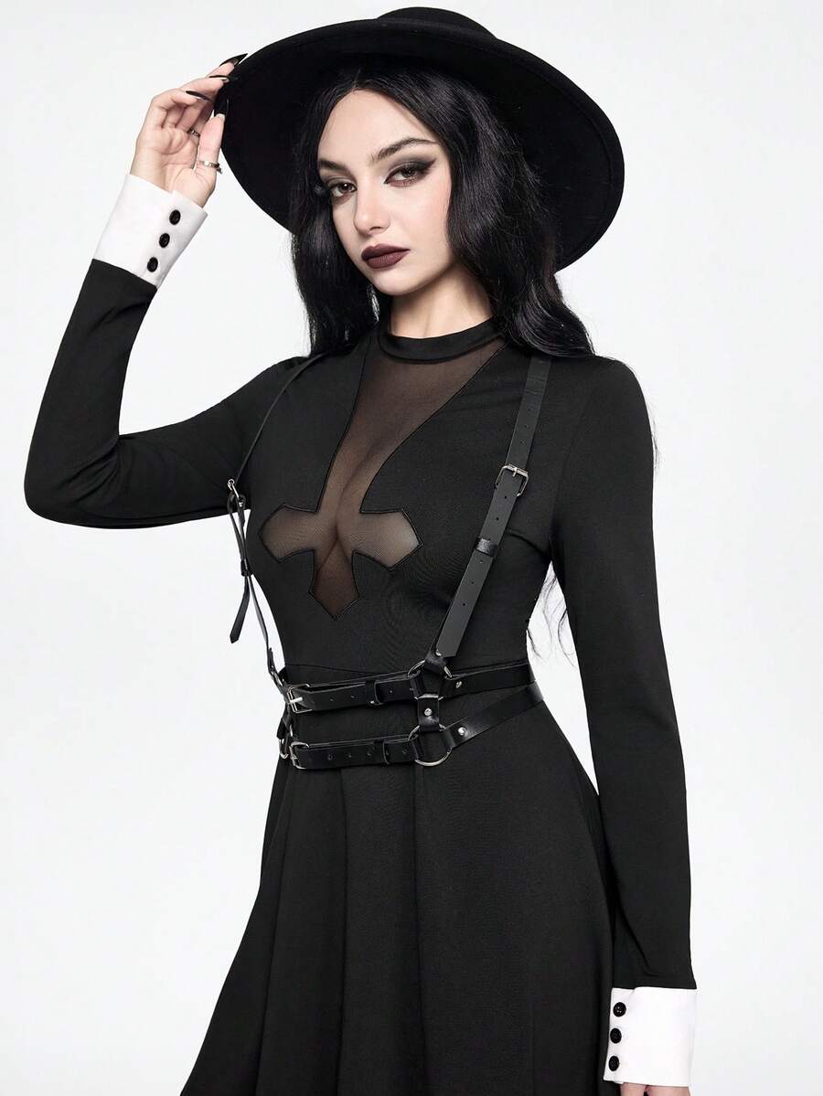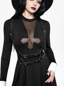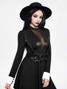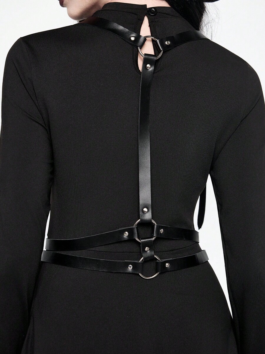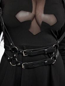 Grunge Punk حزام خصر مطاطي بإبزيم ضغط مزدوج على الطراز البانك روك 1 قطعة، حزام شد بشكل متعدد الأشرطة بسيط على طراز Y2K، حزام أزرار للسراويل على الأزياء العصرية